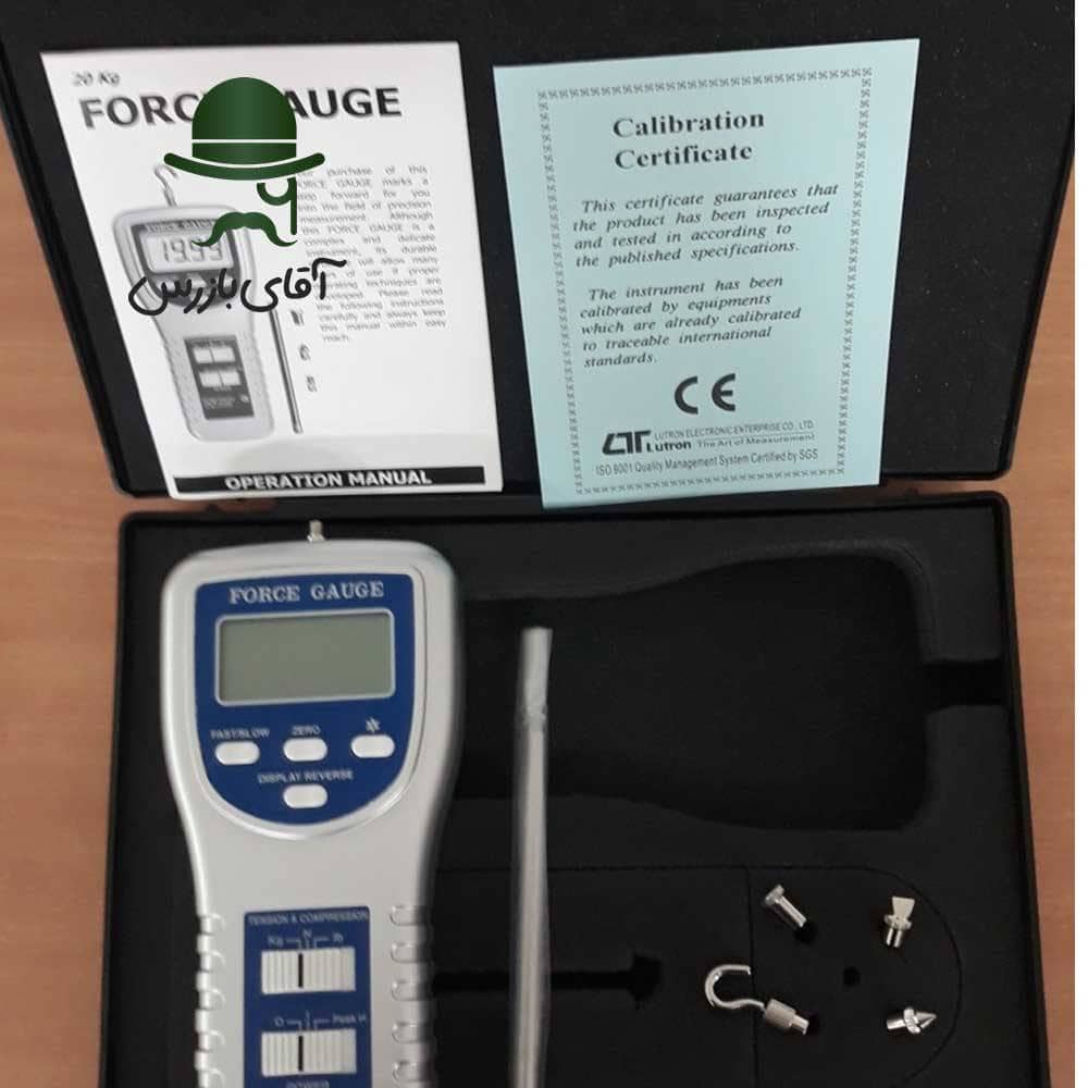 نیروسنج لوترون LUTRON FG-5020 ساخت کمپانی لوترون تایوان نیرو سنجی سر آمد در میان نیرو سنج ها است . برای اطلاع از قیمت و کارایی محصولات مشابه به دسته بندی مراجعه فرمایید. نیروسنج ها در مدل های آزمایشگاهی از فنر و یک قلاب درست می شوند ولی در مدل های دیجیتال و پیشرفته از همان سنسورهای استرین گیج و لودسل درست میشوند. از ویژگی های این نیرو سنج (force gauge) می توان به سنجش آن برحسب کیلو گرم تا 20 کیلو ، دارای سنسور مجزا در دو وضعیت متفاوت کششی و فشاری اشاره کرد.