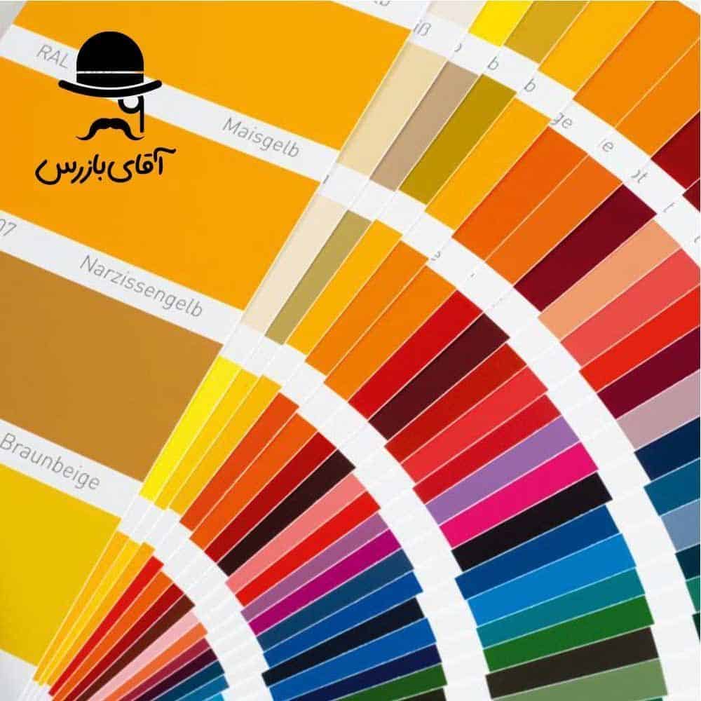 - نمودار رنگی RAL K7 شامل 193 رنگ ثابت، 15 رنگ مرواریدی، 6 رنگ فلورسنت، 1 رنگ آهنی و 1 رنگ متالیک